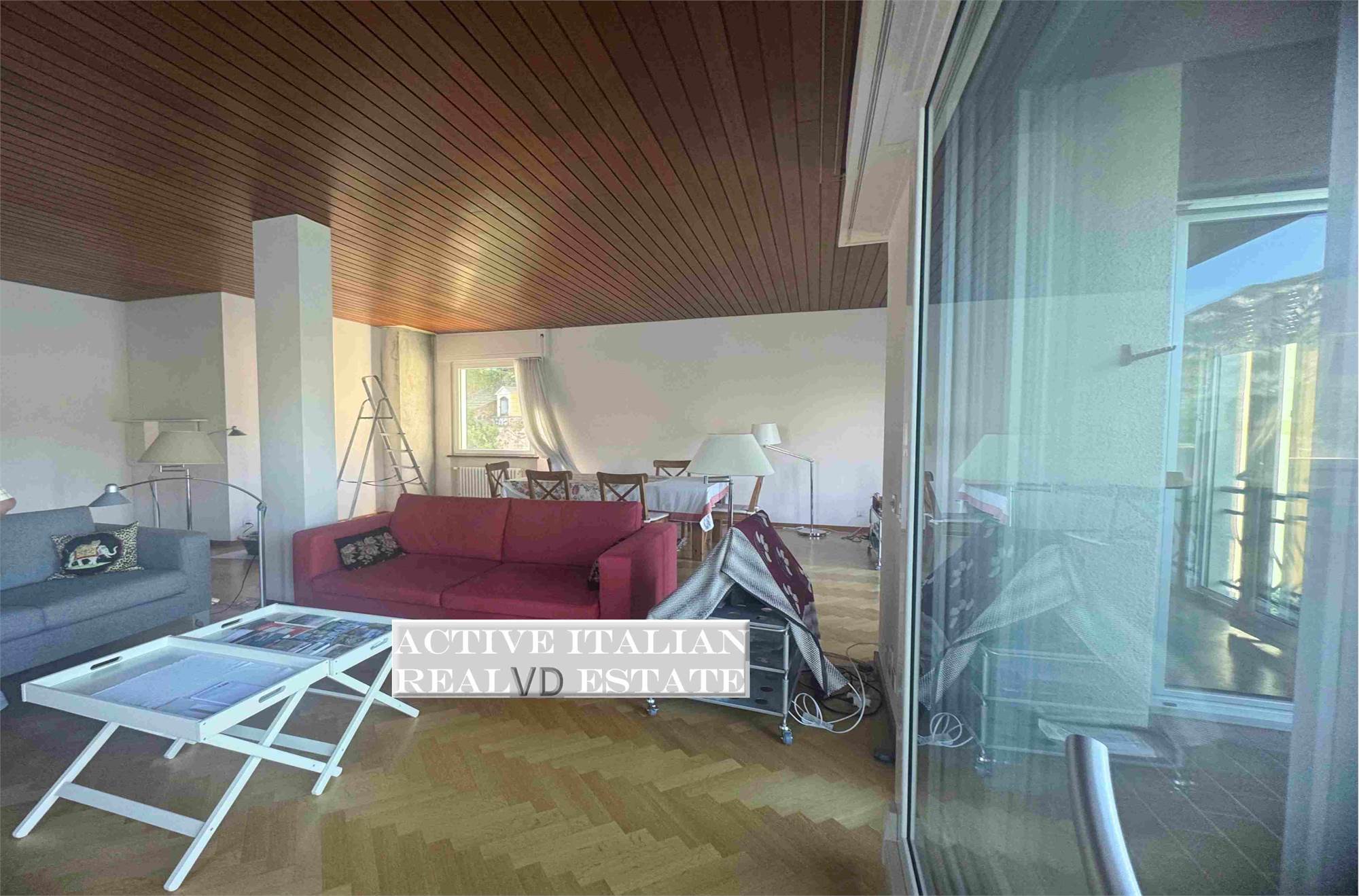 Apartment composed of a double living room, 2 double bedrooms and kitchen, 2 bathrooms for a total of 160 m2, a terrace, balcony plus 2 parking spaces complete the property. From the terrace you can admire a panoramic view of the city of Campione and Lake Lugano.