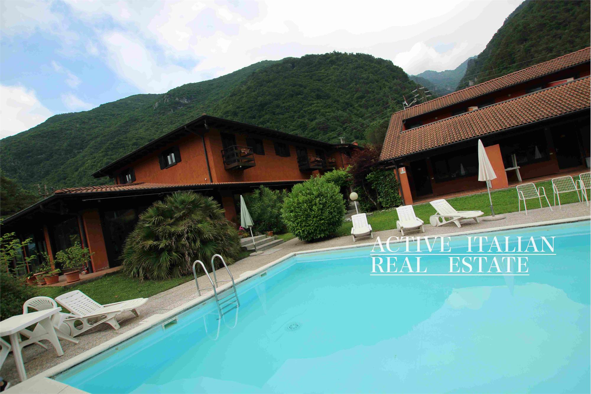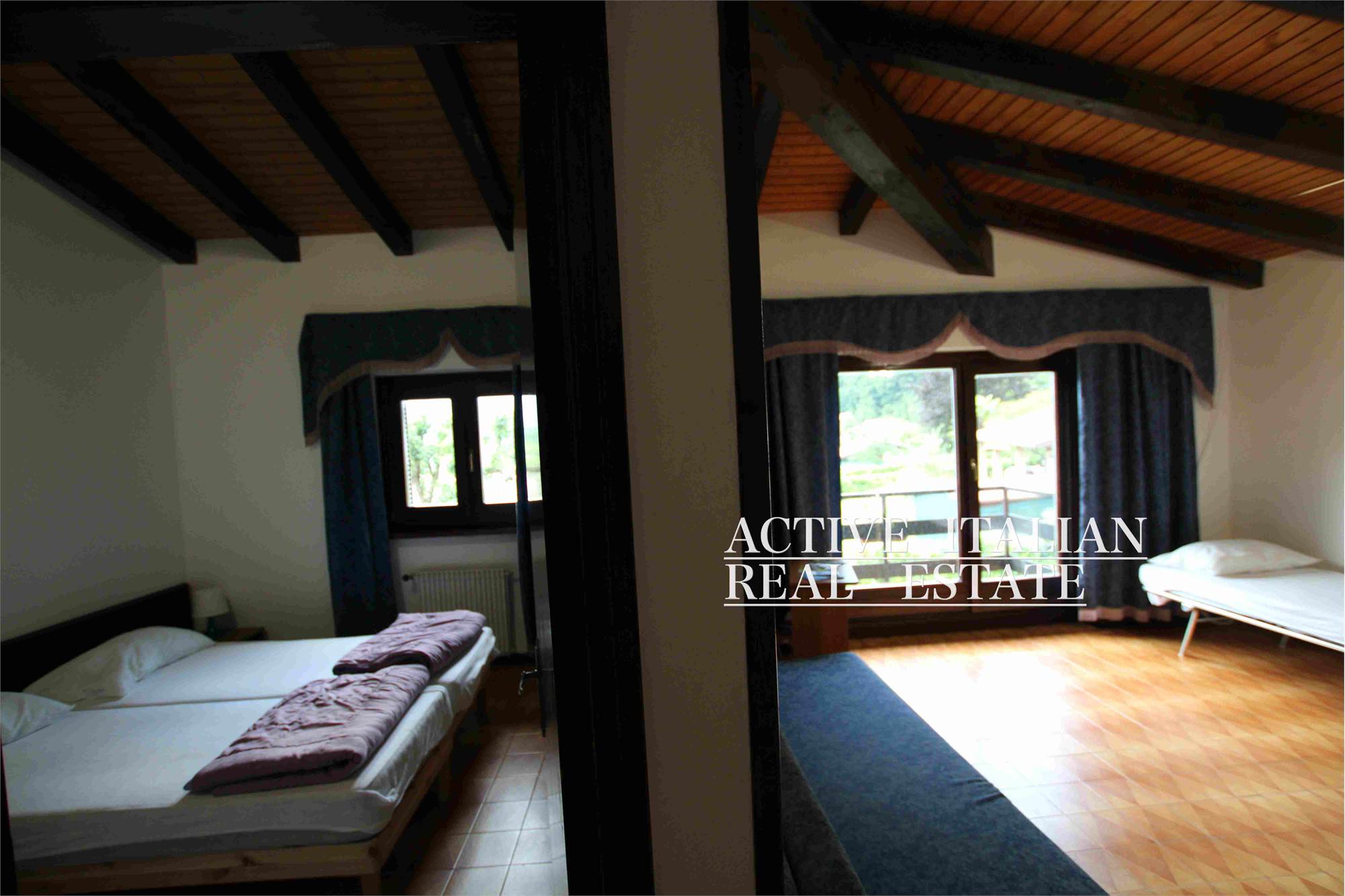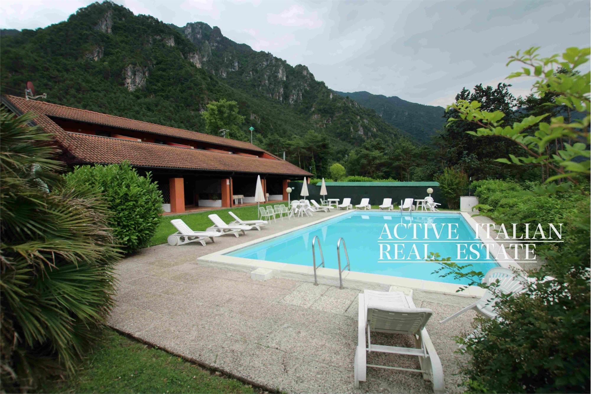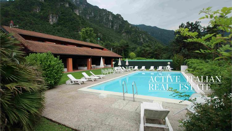 In a privileged position, a few steps from the beach, immersed in tranquility and peace, we offer a real estate complex with swimming pool for investment in short-term rentals or other projects. 2 buildings of approximately 1000m2 each with swimming pool and 5000m2 of private garden are suitable for the realization of various projects. We are located on Lake Idro, a lake of glacial origin located in the province of Brescia on the border with Trentino. Located 368 meters above sea level, it is formed by the waters of the Chiese river, which is also its emissary. Its surface is Lake Idro, unlike that of Iseo and Garda, it cannot be traveled along its entire perimeter with vehicles because, on the eastern shore, the road that starts from Idro ends 5 km later, in the hamlet of Vesta and only a path allows the connection with Baitoni, a hamlet of the municipality of Bondone. The western bank is crossed by the Caffaro state road 237 which enters the inhabited centers of Idro, Anfo and Ponte Caffaro and then enters Trentino territory. During the summer period there is a transport service with a boat that connects the towns of Lemprato, Crone, Anfo, Ponte Caffaro, Vesta and Vantone. The 10.9 km² and reaches a maximum depth of 122 meters.