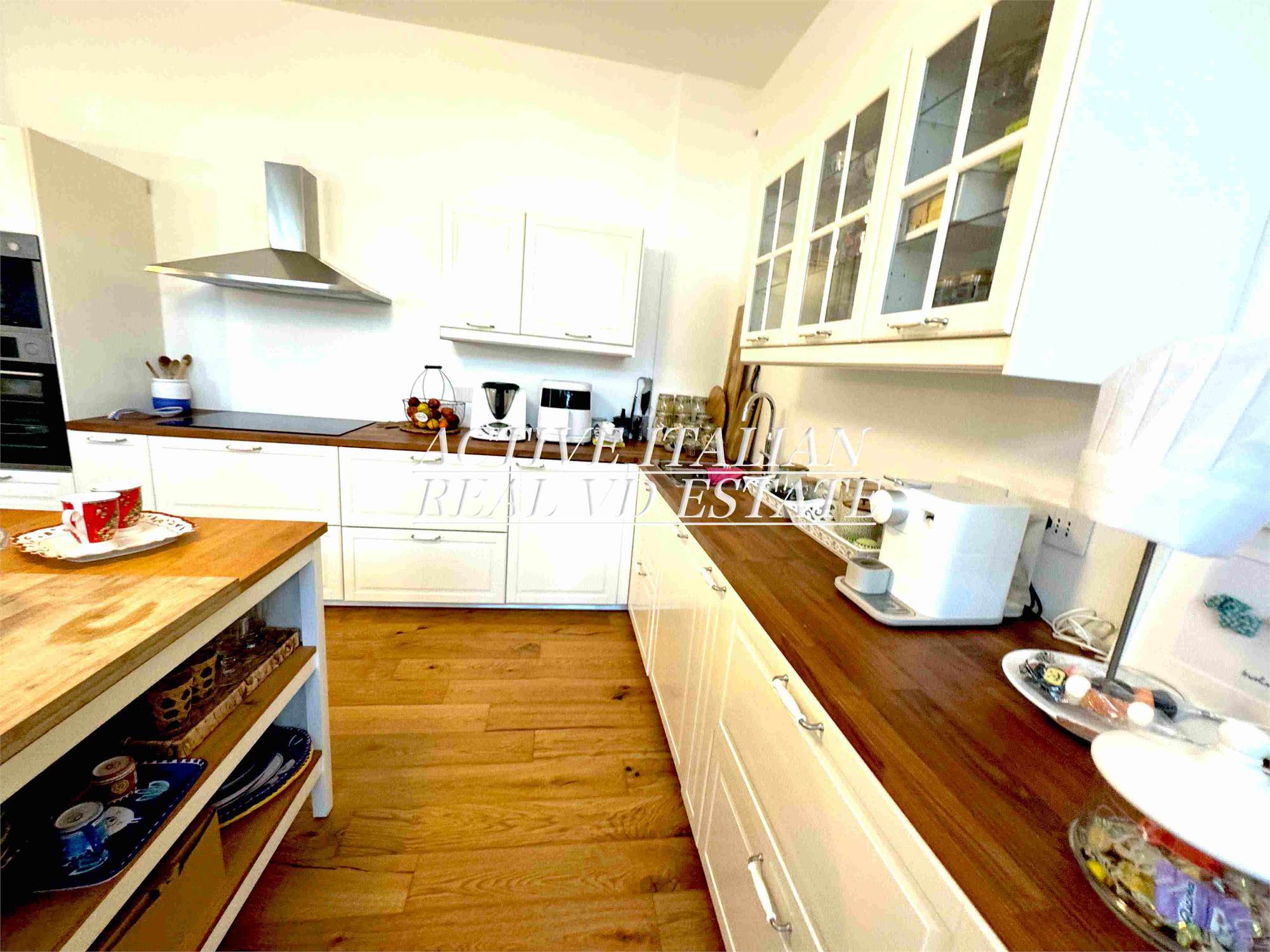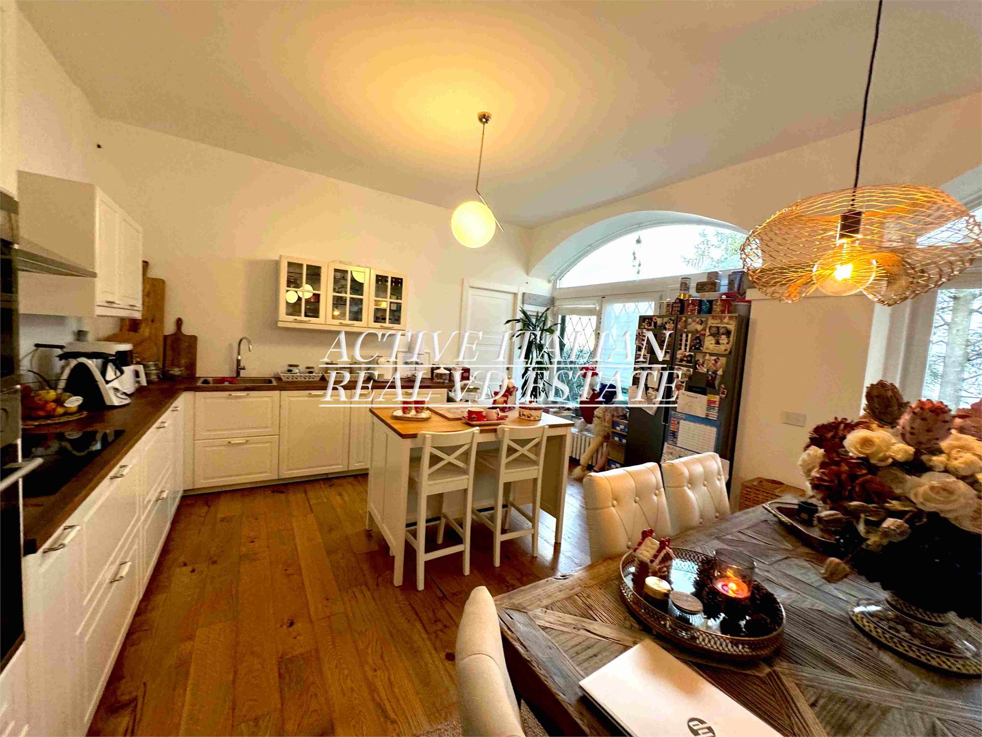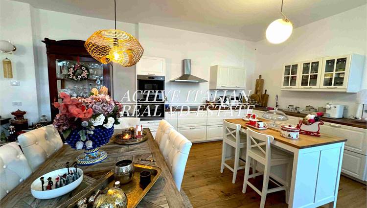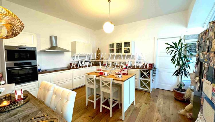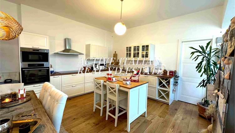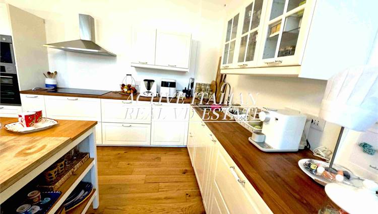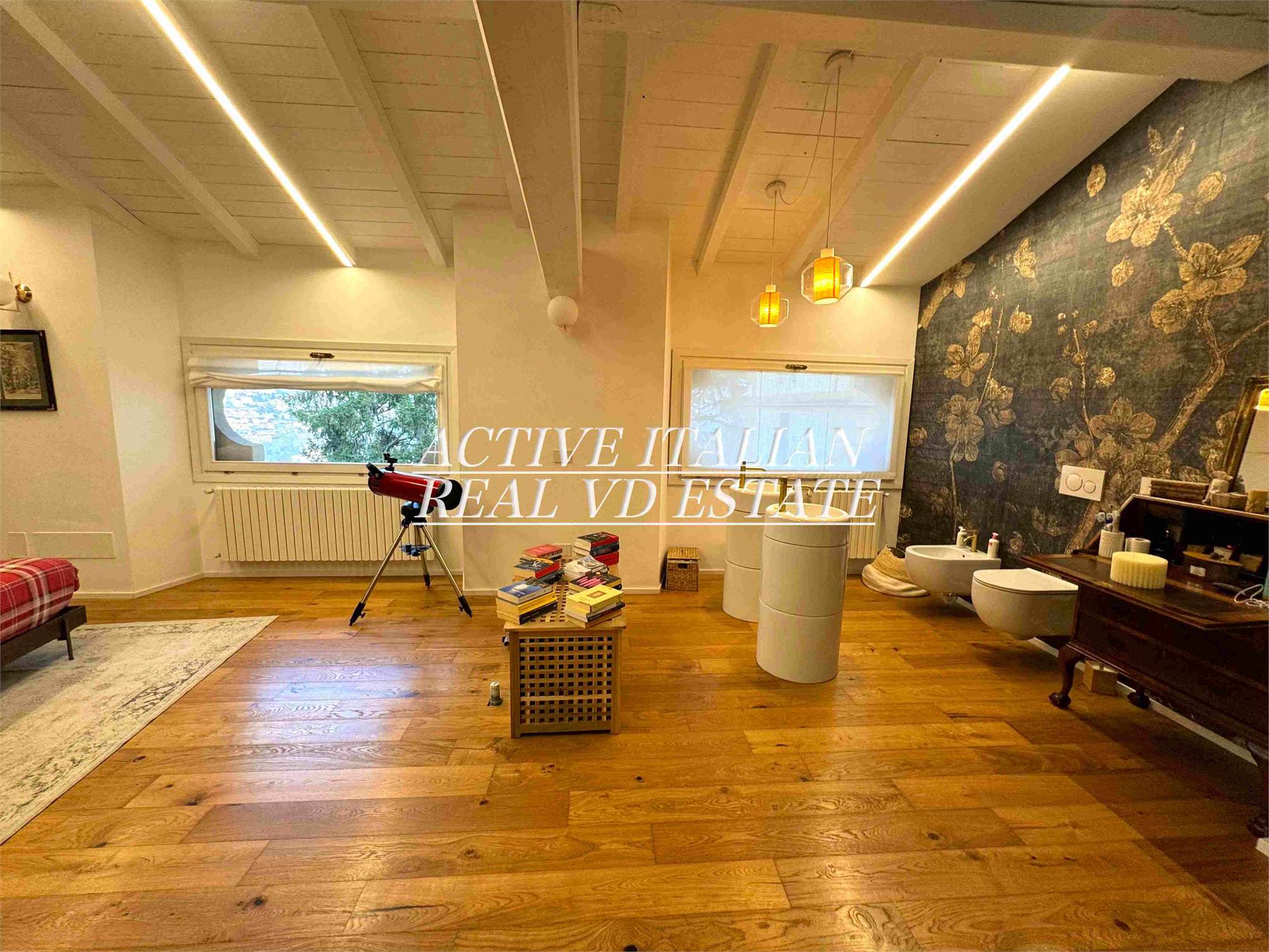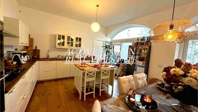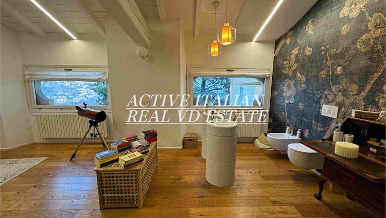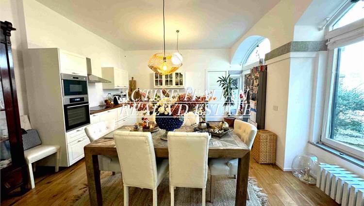 Proponiamo immobile di prestigio in villa d'epoca a Como con parco secolare. L'appartamento, di circa 200 mq, è panoramico, sito in un contesto unico sul lago di Como, zona Sagnino, a 10 minuti dal centro di Como, 5 da Cernobbio e dalla Svizzera. Completamente ristrutturato a fine 2023, si sviluppa su 2 livelli di circa 100 mq ognuno, collegati da una elegante scala in travertino e parapetto in ferro battuto. Al piano terra, 4 finestroni ad arco offrono fascino, luminosità e vista panoramica sul Lago e sul parco, alla zona giorno che include salone e cucina. Il piano terra è completato da ripostiglio e lavanderia.