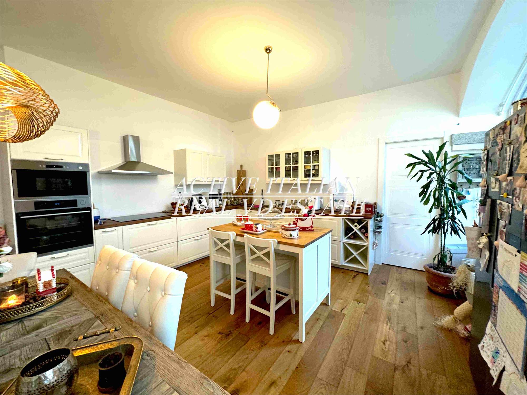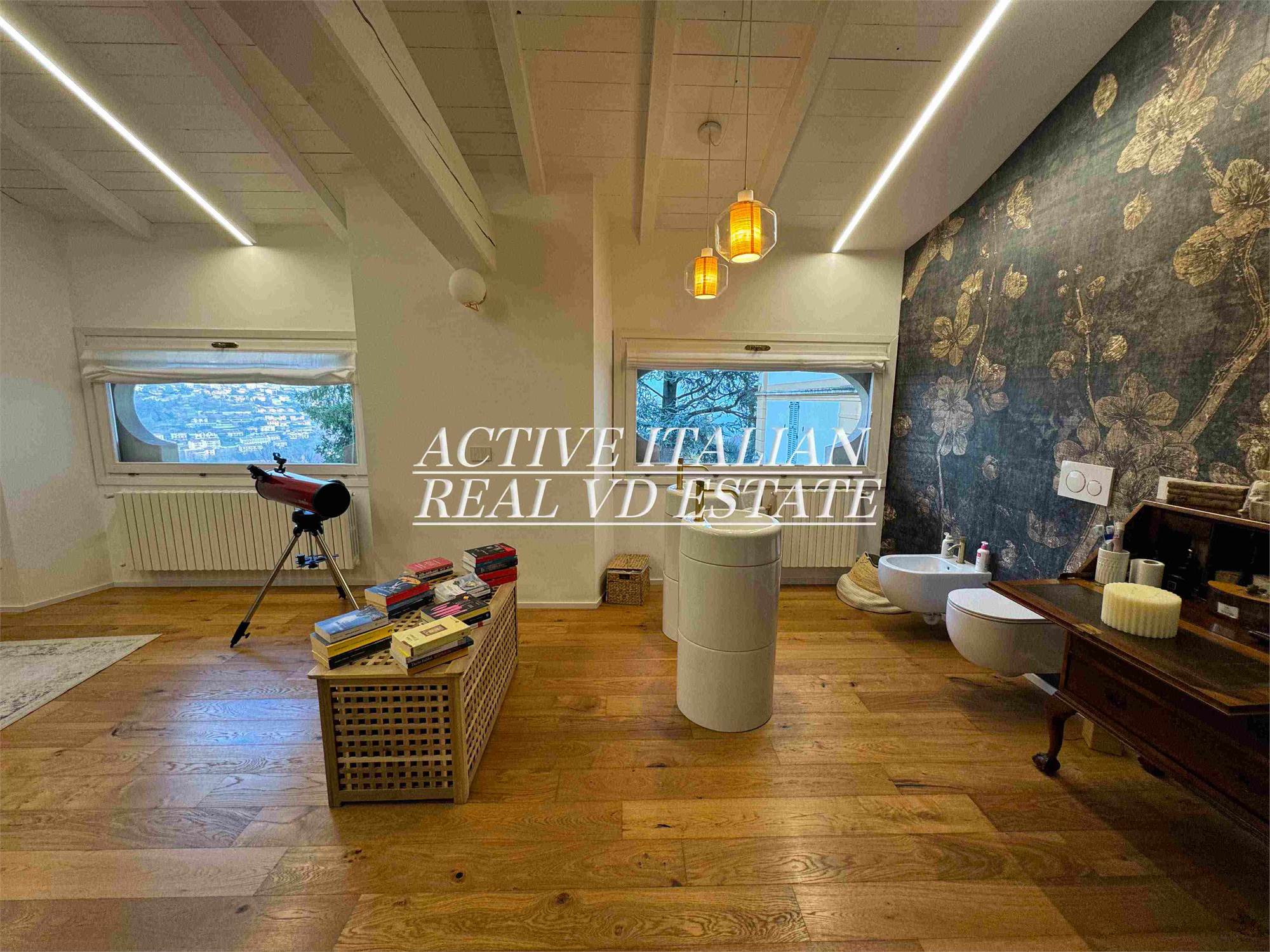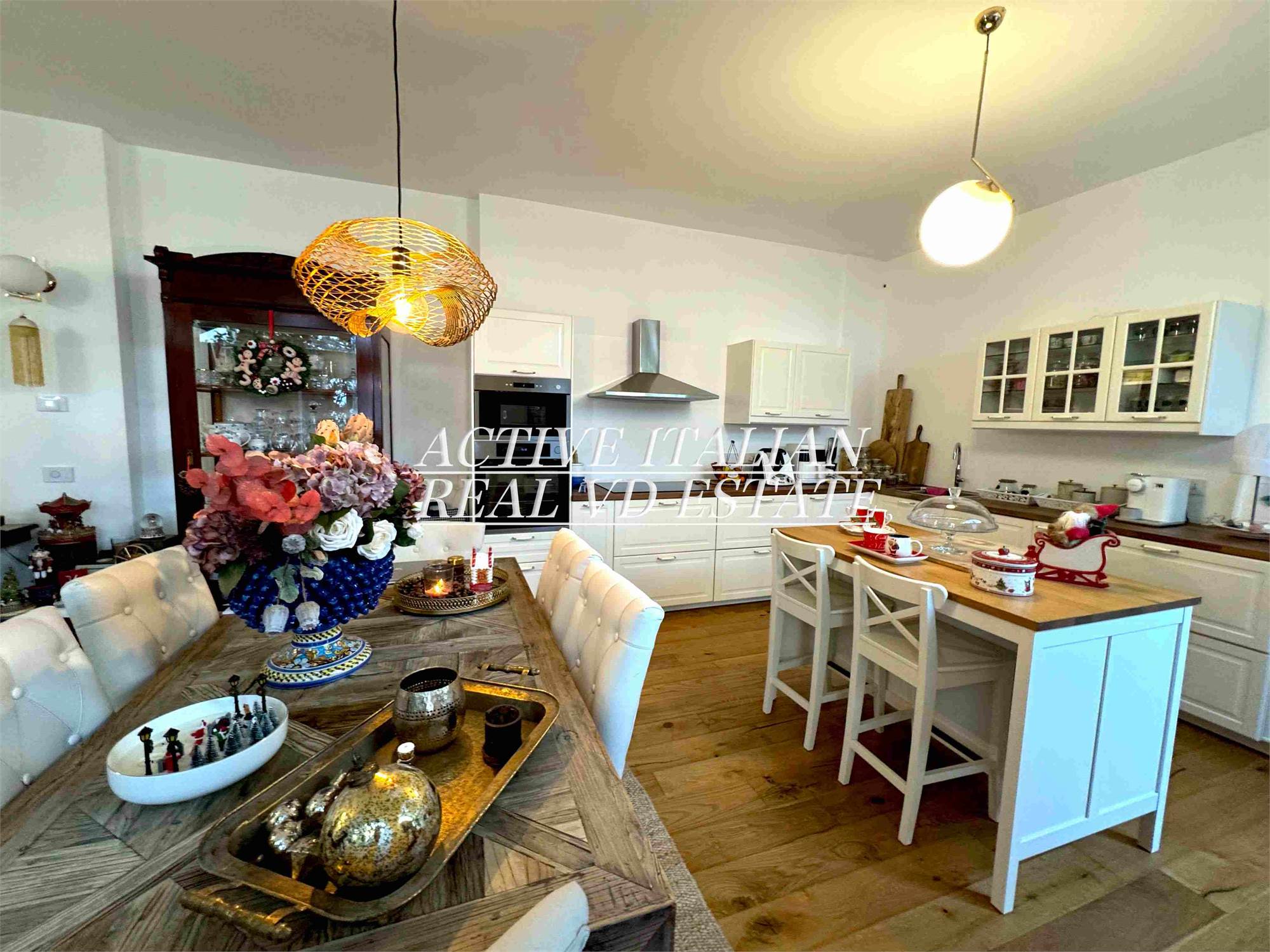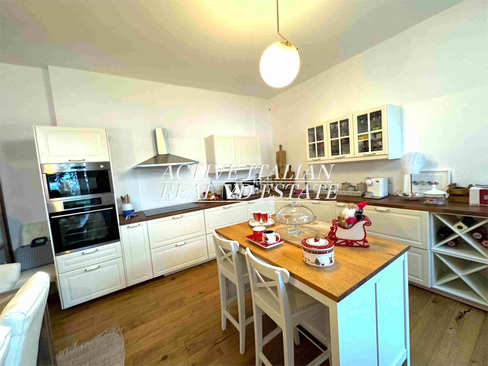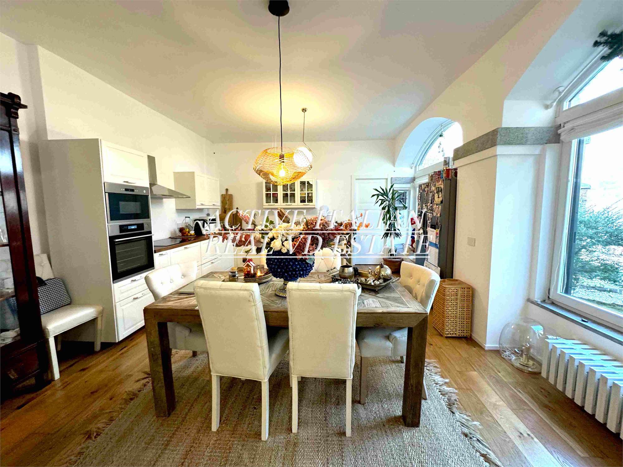 Proponiamo immobile di prestigio in villa d'epoca a Como con parco secolare. L'appartamento, di circa 200 mq, è panoramico, sito in un contesto unico sul lago di Como, zona Sagnino, a 10 minuti dal centro di Como, 5 da Cernobbio e dalla Svizzera. Completamente ristrutturato a fine 2023, si sviluppa su 2 livelli di circa 100 mq ognuno, collegati da una elegante scala in travertino e parapetto in ferro battuto. Al piano terra, 4 finestroni ad arco offrono fascino, luminosità e vista panoramica sul Lago e sul parco, alla zona giorno che include salone e cucina. Il piano terra è completato da ripostiglio e lavanderia.