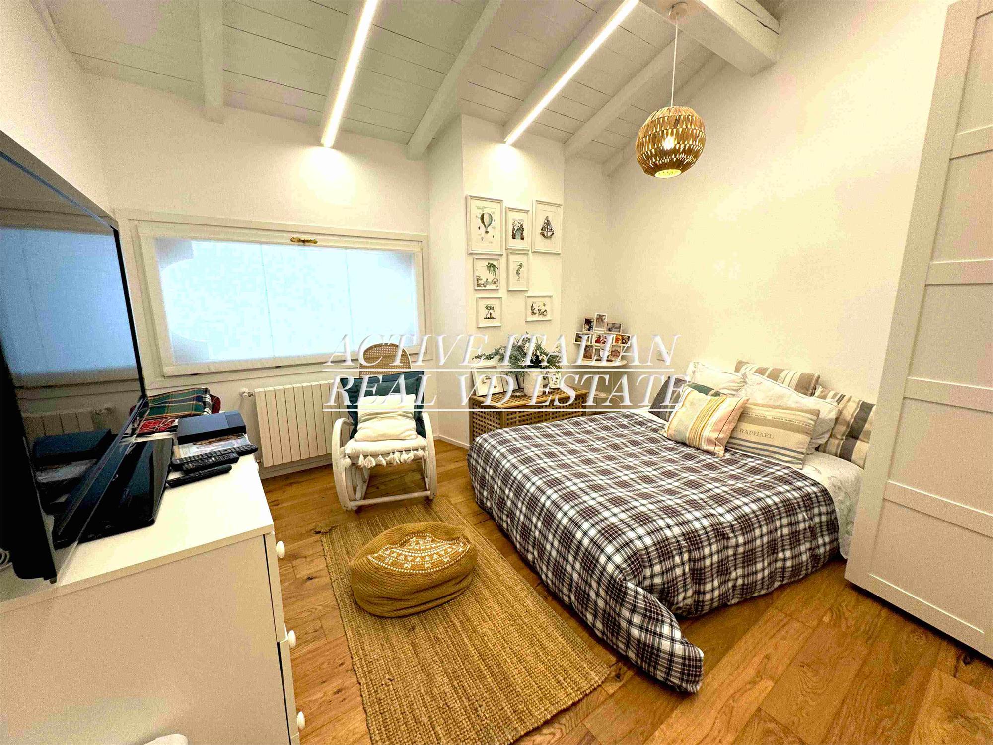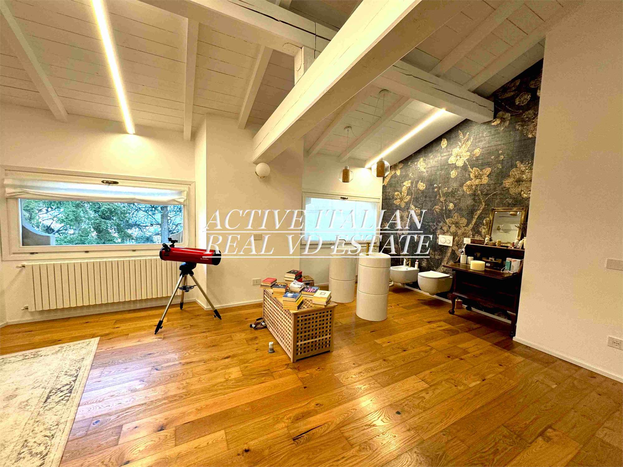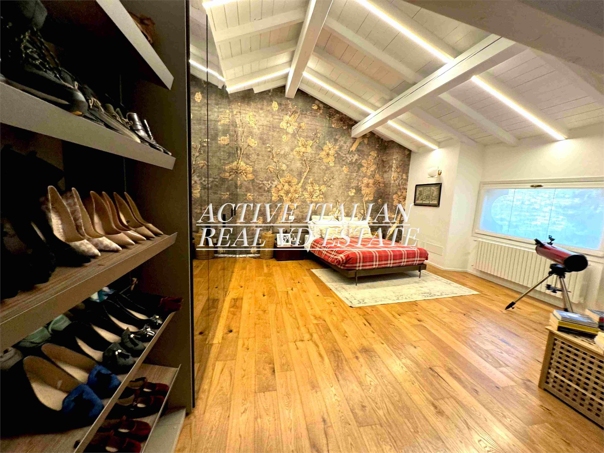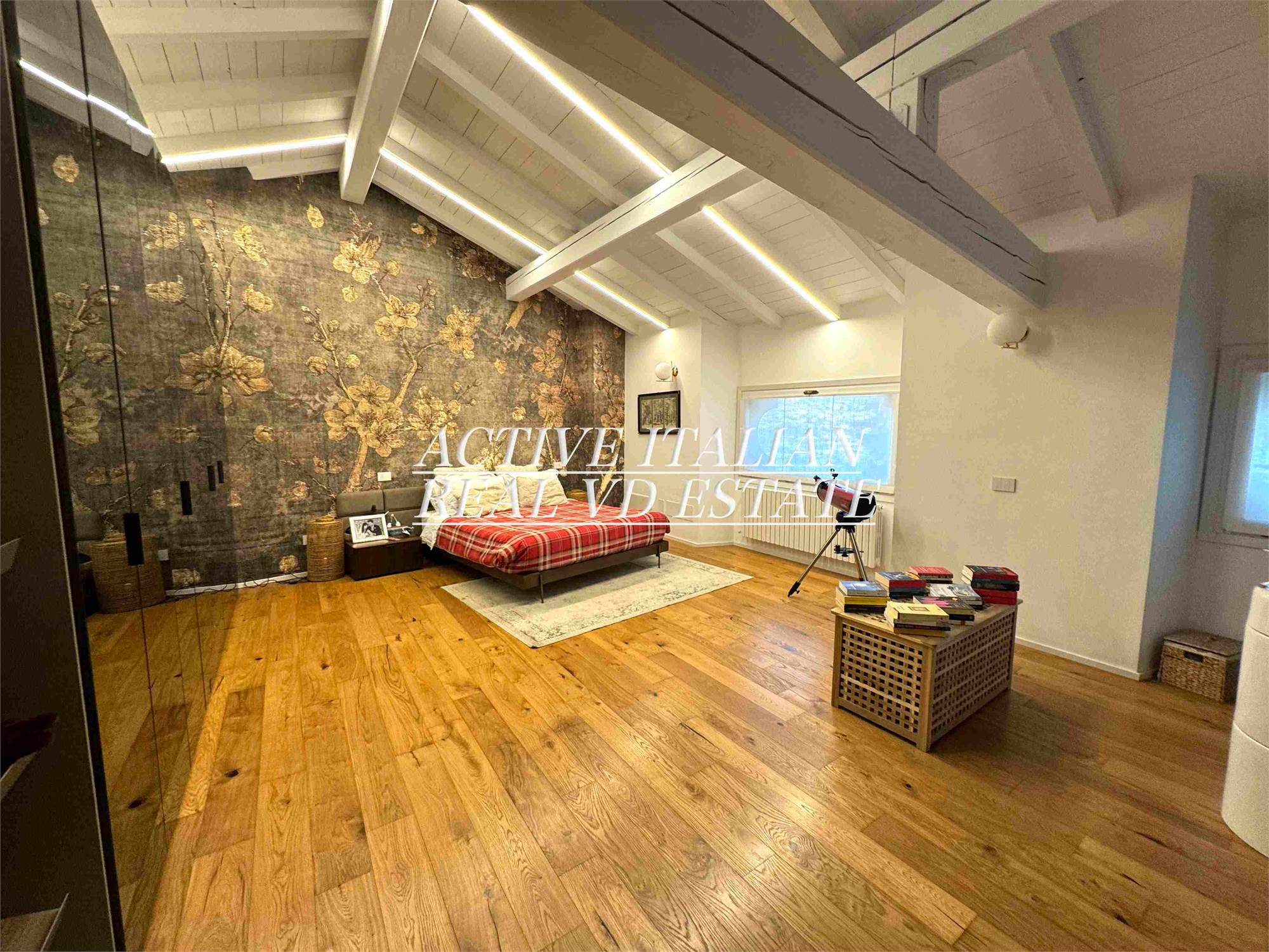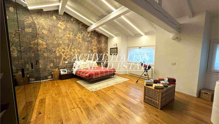 Il piano superiore, consta di 4 camere da letto, di cui una master di 40 mq, e 2 bagni di cui uno en suite. Questo piano è dotato di 5 finestre. Completano la proprietà un posto auto nel parco ad uso esclusivo e un ampio box.